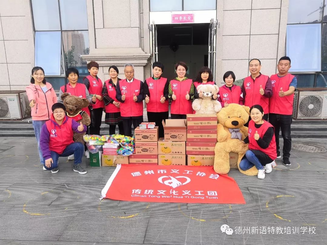 2019年4月23日上午,德州市義工協(xié)會傳統(tǒng)文化義工團的12名愛心義工叔叔阿姨來到德州新語特教培訓(xùn)學(xué)校北校區(qū),為同學(xué)們送來學(xué)習用品及美味零食。