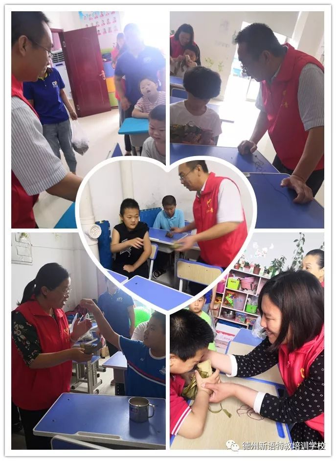 2019年6月6日上午,德州市志愿者協(xié)會范團長帶著志愿者叔叔阿姨們來到德州新語北校區(qū),為北校區(qū)的149位同學們送來端午禮物--粽子。