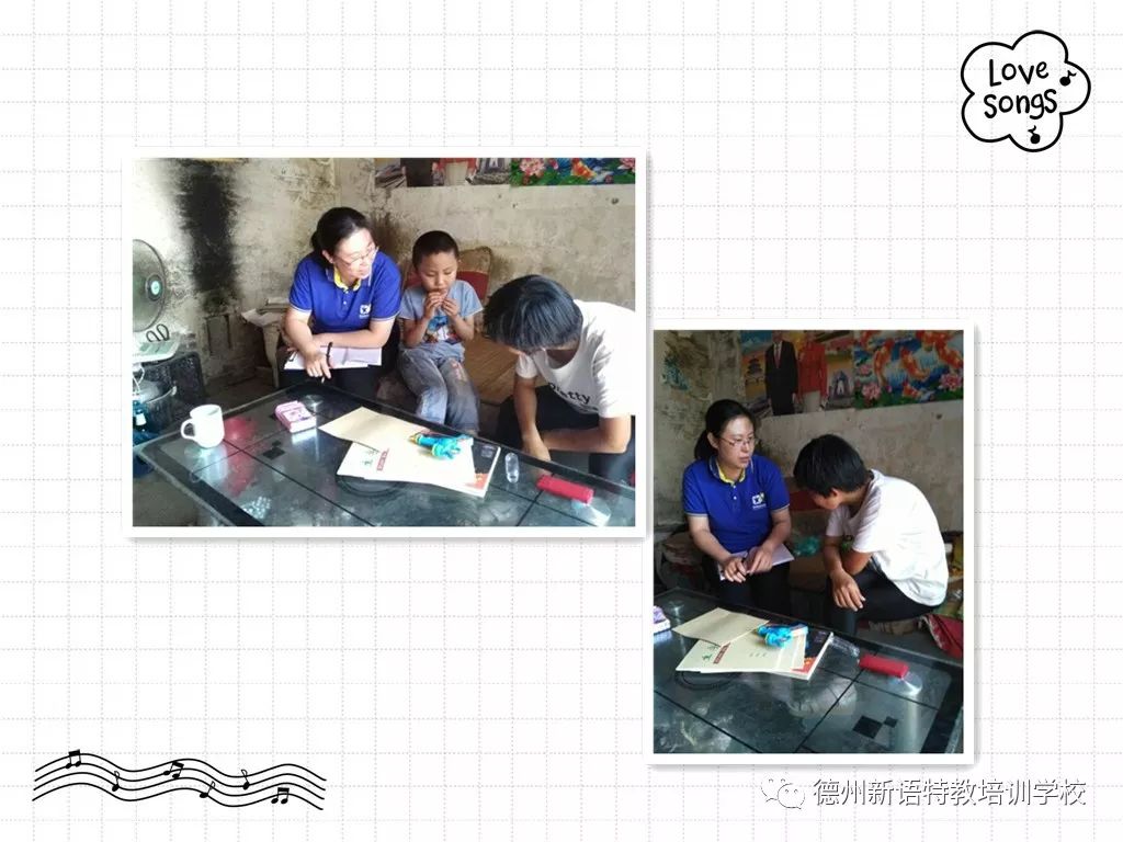 2019年6月19日--6月25日,德州新語特教培訓(xùn)學(xué)校的李文建、李恩英、于美英、劉彥增、李娜五位老師先后前往經(jīng)濟(jì)開發(fā)區(qū)、德城區(qū)、黃河涯鎮(zhèn)、趙虎鎮(zhèn)、平原縣的六位特殊兒童家庭開展送教上門工作。