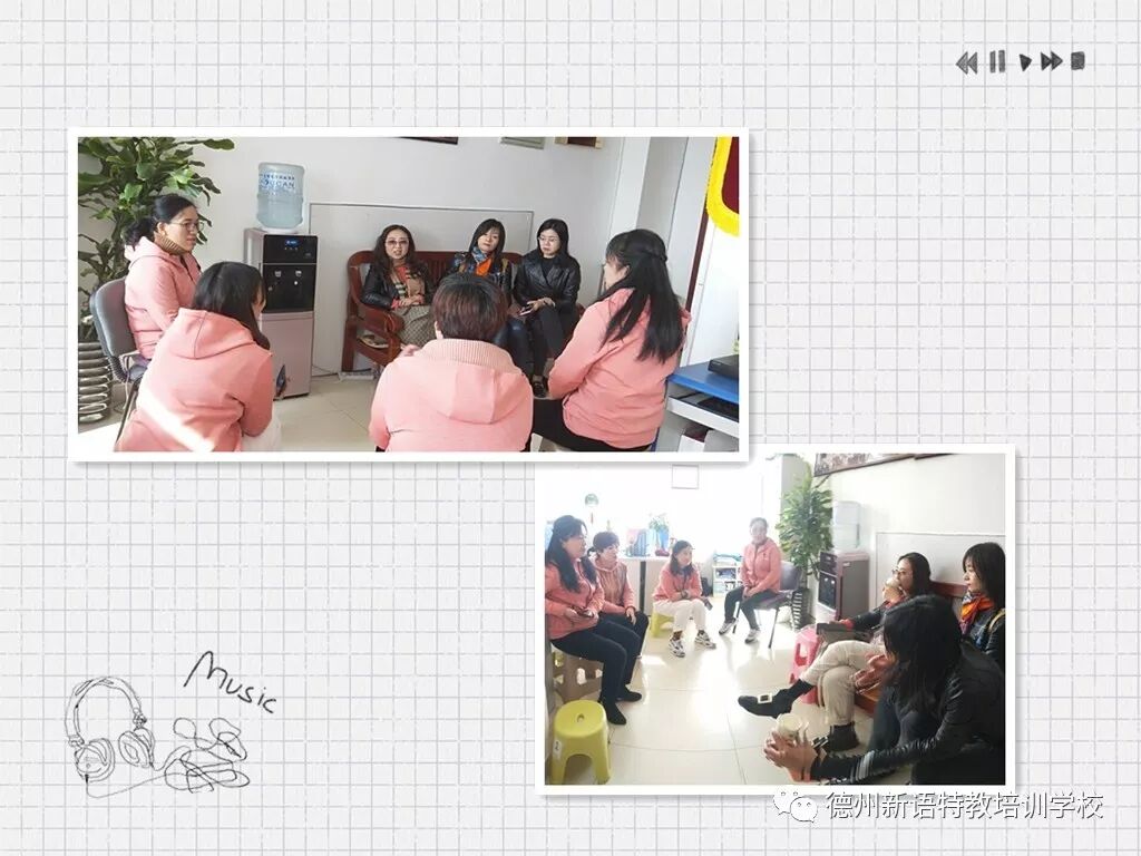 老師們坐在一起交流溝通孩子們的情況以及各自的康復(fù)訓(xùn)練方法,新語的老師們分享了送教上門經(jīng)驗,在互相學(xué)習(xí)中取長補短,共同進步。