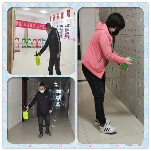 王老師和孟老師則對所有走廊和教室進行全面噴灑消毒,保證環(huán)境無污染!
