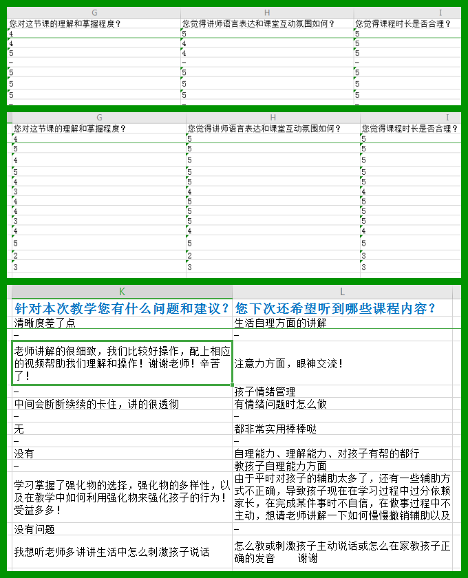 所有填寫的問卷,家長想了解的內(nèi)容我們都記下啦,后期會(huì)慢慢加入到分享課程中,請家長們放心吧!