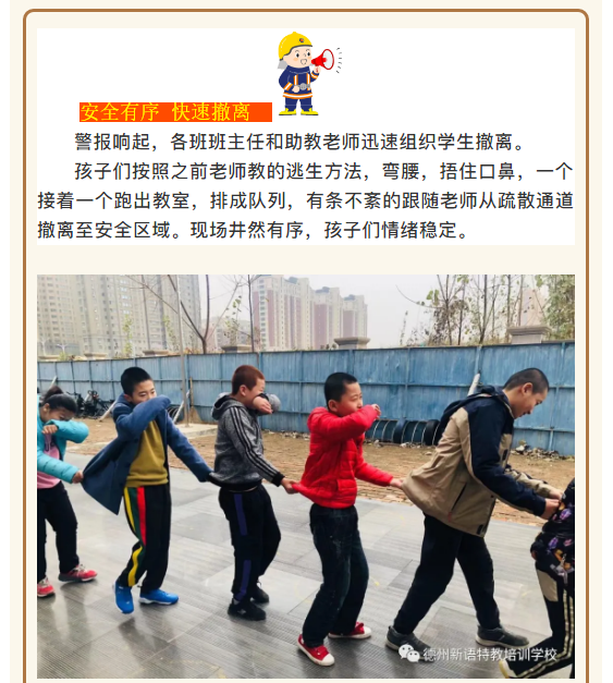 消防演練,拉起心中防火線——新語特教學(xué)校消防疏散演練