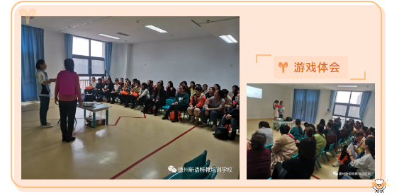 本次培訓(xùn)以“單盲法”游戲?qū)?,讓家長們開心游戲的同時(shí),體會(huì)正向鼓勵(lì)時(shí)和負(fù)面打擊時(shí)的個(gè)人感受,讓家長換位思考孩子康復(fù)訓(xùn)練中的感受。