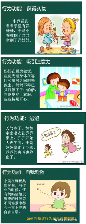 進而講述了問題行為的種類及功能,并通過舉例分析,讓家長了解如何分析問題行為的功能,進而進行行為改變。