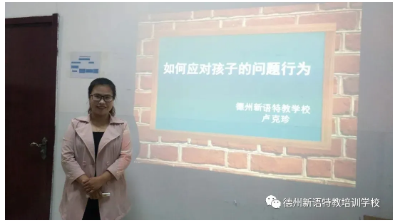 針對以上家長經(jīng)常出現(xiàn)的疑問,12月11日下午,德州新語特教學(xué)校(康復(fù)中心校區(qū))家長培訓(xùn)以《如何應(yīng)對孩子的問題行為》為題,具體分享了如何分析問題行為,培養(yǎng)正性行為,促進孩子進入社會融合。本次主講由資深教師盧克珍擔(dān)任,盧老師入職德州新語八年以來,多年從事一線教學(xué)工作,積累了大量的實踐經(jīng)驗,后參與辦公室工作,接待心智障礙兒童家長,了解孩子們的特點、家長們的疑惑。