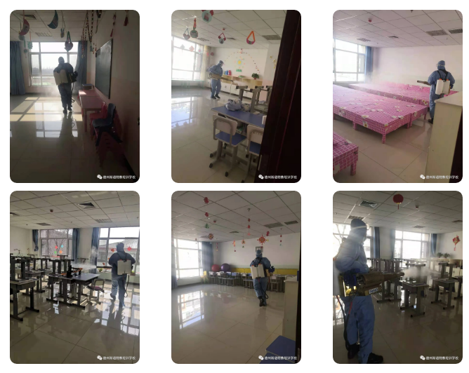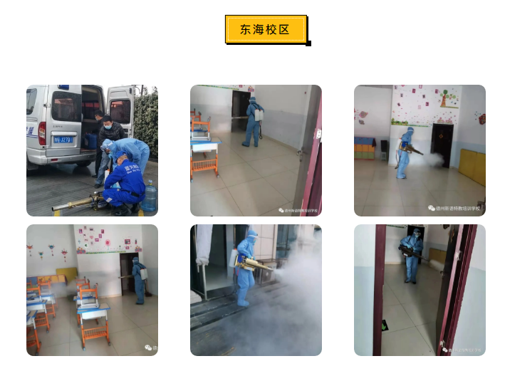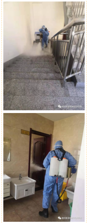 每個(gè)校區(qū),每個(gè)教室、大廳、廁所、走廊、操場(chǎng)一一消毒,不留死角。