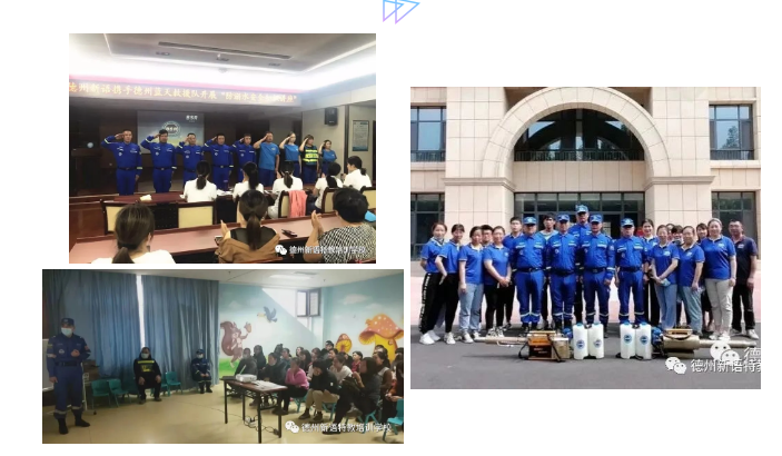 德州救援隊(duì)自2018年起開(kāi)始關(guān)注德州新語(yǔ),多次來(lái)到學(xué)校為老師及家長(zhǎng)進(jìn)行防溺水、消防等知識(shí)講座,新冠疫情以來(lái)更是主動(dòng)承擔(dān)起學(xué)校的環(huán)境消殺工作。