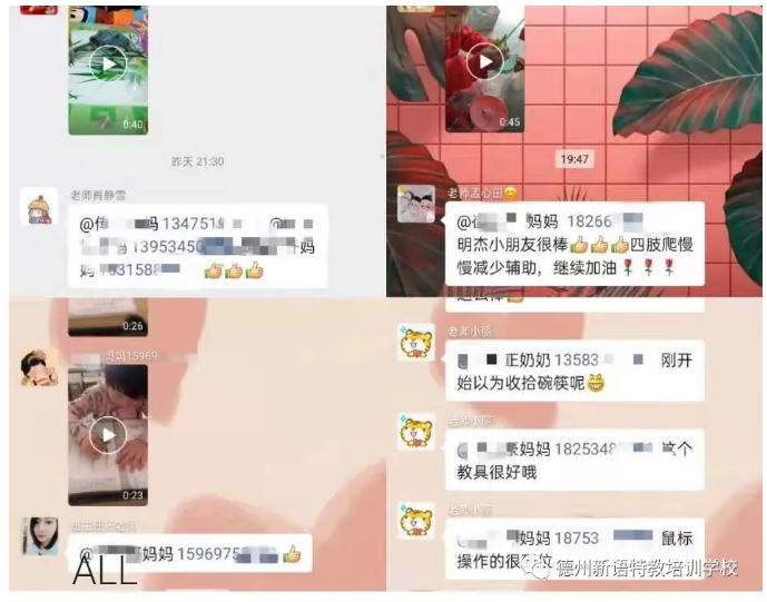 家長們陸續(xù)將孩子們學習活動視頻發(fā)至班級群里。老師對孩子們的表現(xiàn)一一點評,對寶貝們的表現(xiàn)給予建議和肯定,孩子們棒棒的!
