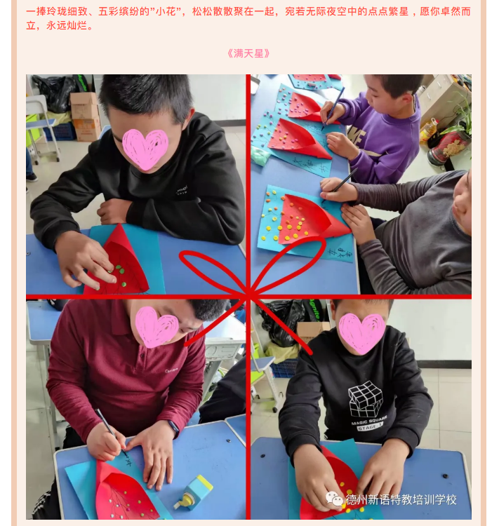 我們的愿景:讓心智障礙人士擁有平等的發(fā)展機(jī)會,享受快樂生活!我們的使命:新語特教通過專業(yè)的技術(shù)培訓(xùn)和社會倡導(dǎo)來提高和改善心智障礙人士的生活質(zhì)量!德州新語特教培訓(xùn)學(xué)校: