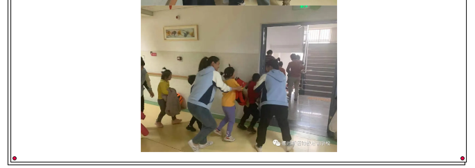 爸爸媽媽在老師們的引領下有序下樓,確保無踩踏,不擁擠。