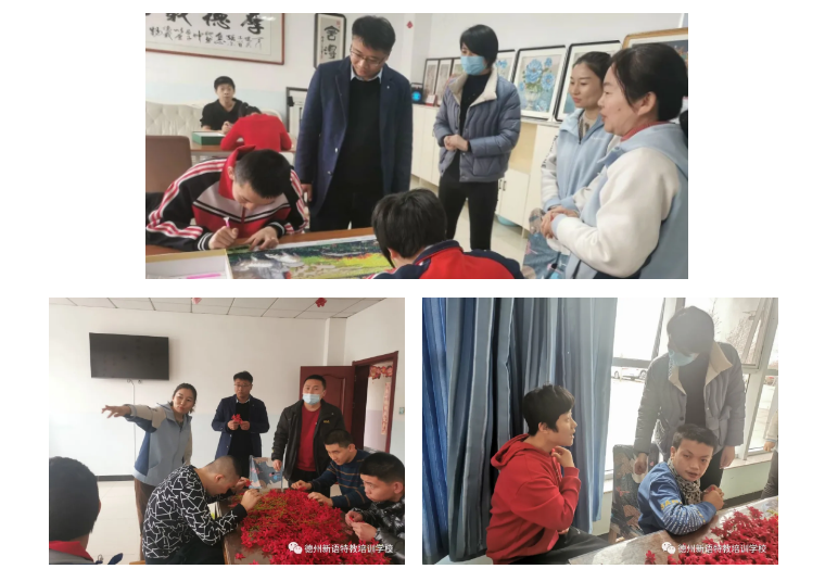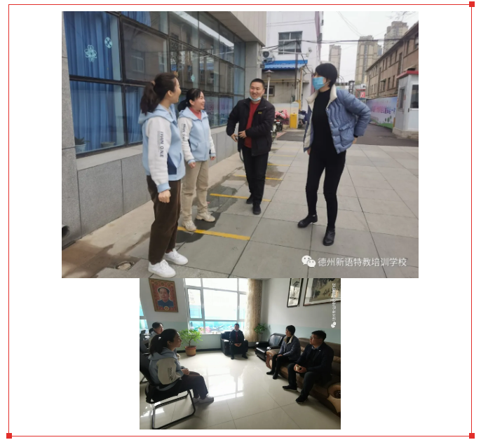 2021年3月18日,聊城市藍天兒童康復活動中心負責人李憲路一行三人來到德州新語特教培訓學校參觀交流。校區(qū)負責人于娟、曲鳳英二位老師全程陪同。