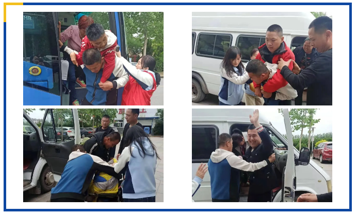 終于到學校啦!下車也是我們很大的困難,有這么多老師幫助我們,我們被暖暖的愛包圍著,感動!