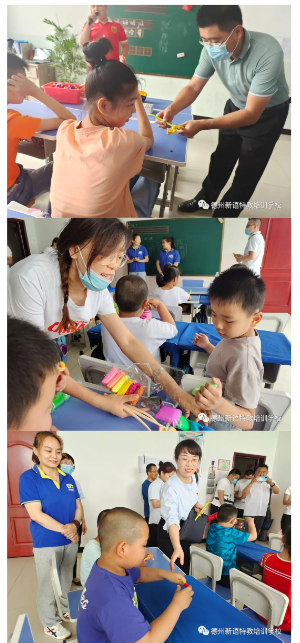 叔叔阿姨們走進每間教室,把教具送到孩子們手里。橡皮泥、水彩筆,筆袋,還有寶貝們喜歡的小印章~