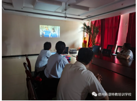 校區(qū)負責人于娟老師為大家介紹學校情況以及心智障礙孩子們的特征,大家一起觀看學校發(fā)展歷程專題片,進一步了解這些來自星星的孩子。