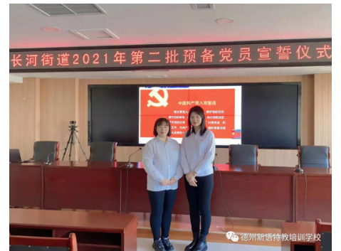 2021年12月30日,德州新語特教培訓(xùn)學(xué)校張靜,孫士偉二位老師參加長河街道2021年第二批預(yù)備黨員宣誓儀式!