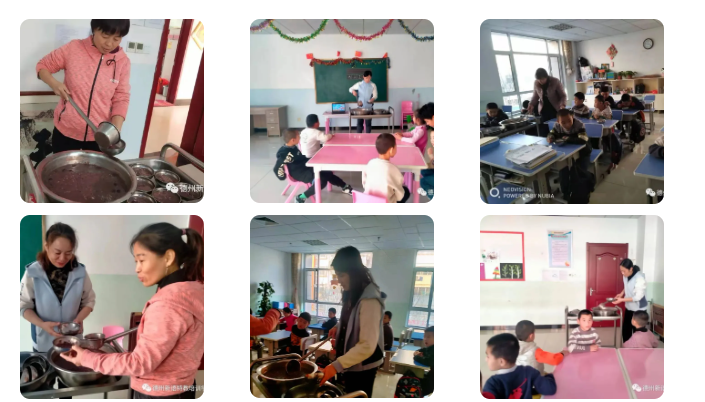 臘八節(jié)當(dāng)然要喝臘八粥啦!老師們將熬制好的臘八粥端到教室里,給孩子們分發(fā)品嘗。