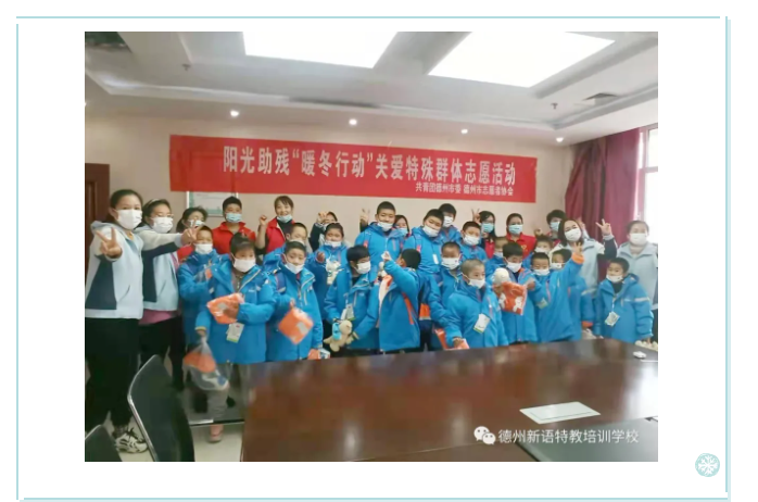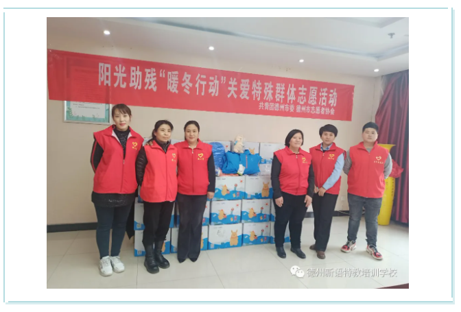 2022年1月7日下午,德州市志愿者協會的志愿者們來到新語特教,給學校的25名貧困學生送來了“壹基金”溫暖包。