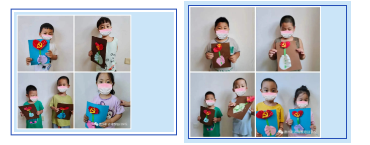 作品展示:寶貝們手持自己的作品,祝中國共產(chǎn)黨生日快樂!