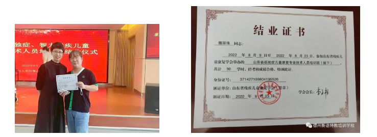 為了提升山東省孤獨癥兒童的康復訓練水平,2022年8月9日--8月23日,由山東省殘疾兒童康復學會舉辦的“山東省孤獨癥兒童康復專業(yè)技術人員培訓班”在濟南市婦幼保健院舉辦。德州新語特教培訓學校魏麗偉老師參加了本次培訓。