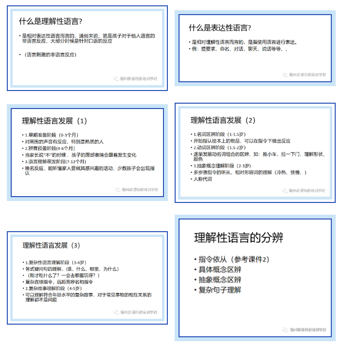 李老師首先闡述了理解性語言和表達性語言的概念,聯(lián)系實際例子進行講述,進而與一般孩子理解性語言的發(fā)展規(guī)律進行對比,深入淺出,簡單易懂。