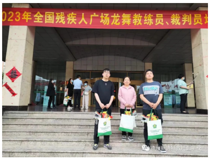 為進(jìn)一步加強(qiáng)殘疾人康復(fù)健身體育服務(wù)供給,滿足殘疾人不斷增長的康復(fù)指導(dǎo)需求,同時培養(yǎng)一批具有教學(xué)指導(dǎo)、活動組織能力的殘疾人廣場龍舞運動教練員,裁判員隊伍,2023年5月22日--26日,為期5天的全國殘疾人廣場龍舞教練員,裁判員培訓(xùn)班在山東省棗莊市滕州市舉辦。德州新語特教培訓(xùn)學(xué)校曲鳳英、侯建鵬、王鑫瑞三位教師前往參訓(xùn)。
