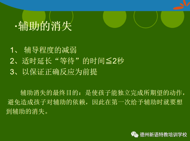 最后,強(qiáng)調(diào)輔助是促進(jìn)孩子習(xí)得技能的一個方法,輔助的消失才是孩子真正習(xí)得技能、能力提升的表現(xiàn),因此在第一次給與輔助時就要想到輔助的消失。