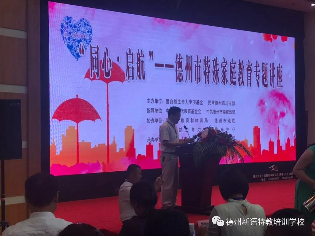 2019年6月29日,在德州貴賓樓舉辦了“同心·啟航”——德州市特殊孩子家庭教育專題講座。本次講座由主辦單位:中國下一代教育基金會(huì)、民革德州市總支部,支持單位:德州市統(tǒng)戰(zhàn)部、德州市教育體育局、德州市殘聯(lián),承辦單位:德州市特殊教育學(xué)校、德州新語特教培訓(xùn)學(xué)校,聯(lián)合舉辦。共計(jì)參加人數(shù)300余人。