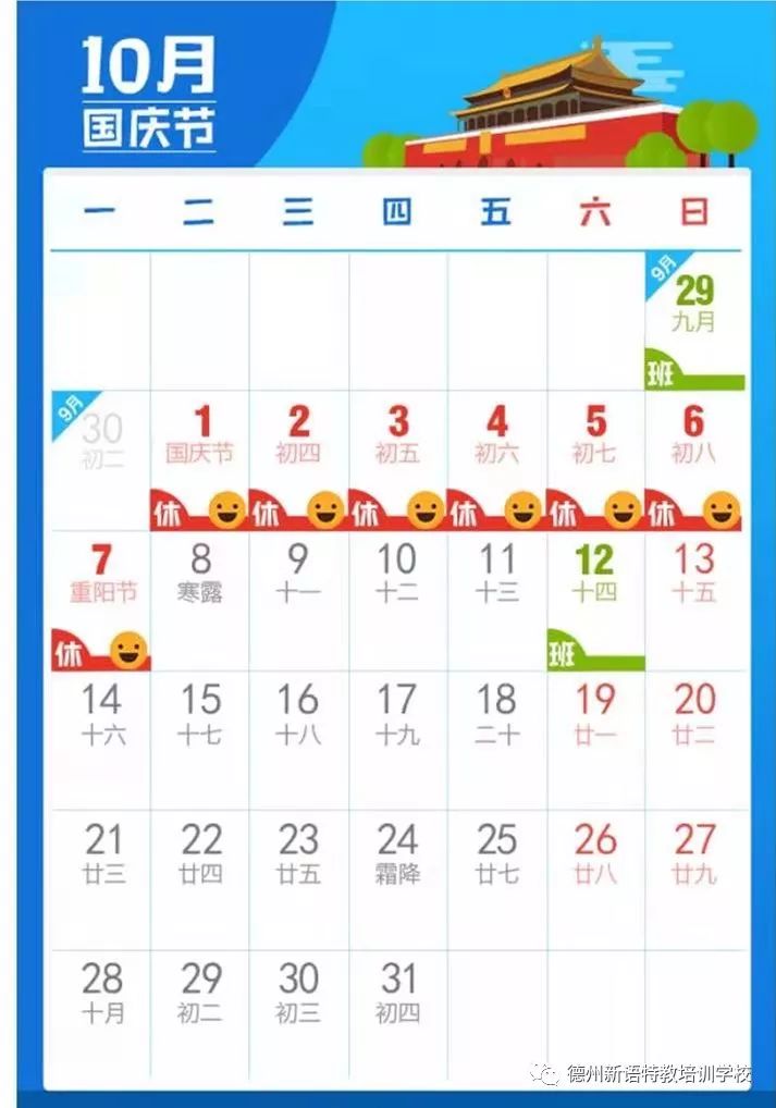 【放假通知】德州新語(yǔ)2019年十一放假通知與溫馨提示