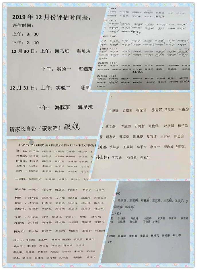 我校12月30日—31日兩天,將對(duì)全校學(xué)生進(jìn)行評(píng)估;后期,老師們會(huì)根據(jù)每個(gè)孩子的評(píng)估結(jié)果,制定出個(gè)別訓(xùn)練計(jì)劃、月計(jì)劃與周計(jì)劃,有針對(duì)性的進(jìn)行康復(fù)訓(xùn)練,促進(jìn)學(xué)生能力的提升。