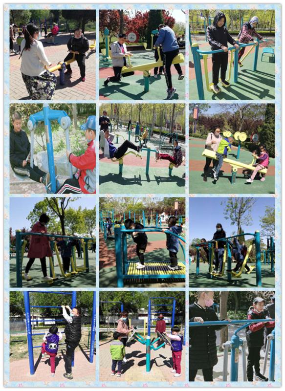 處處可見的體育器材成了我們游戲的道具,找一個小伙伴,或者與爸爸、媽媽來一場小小的比賽,其樂無窮!