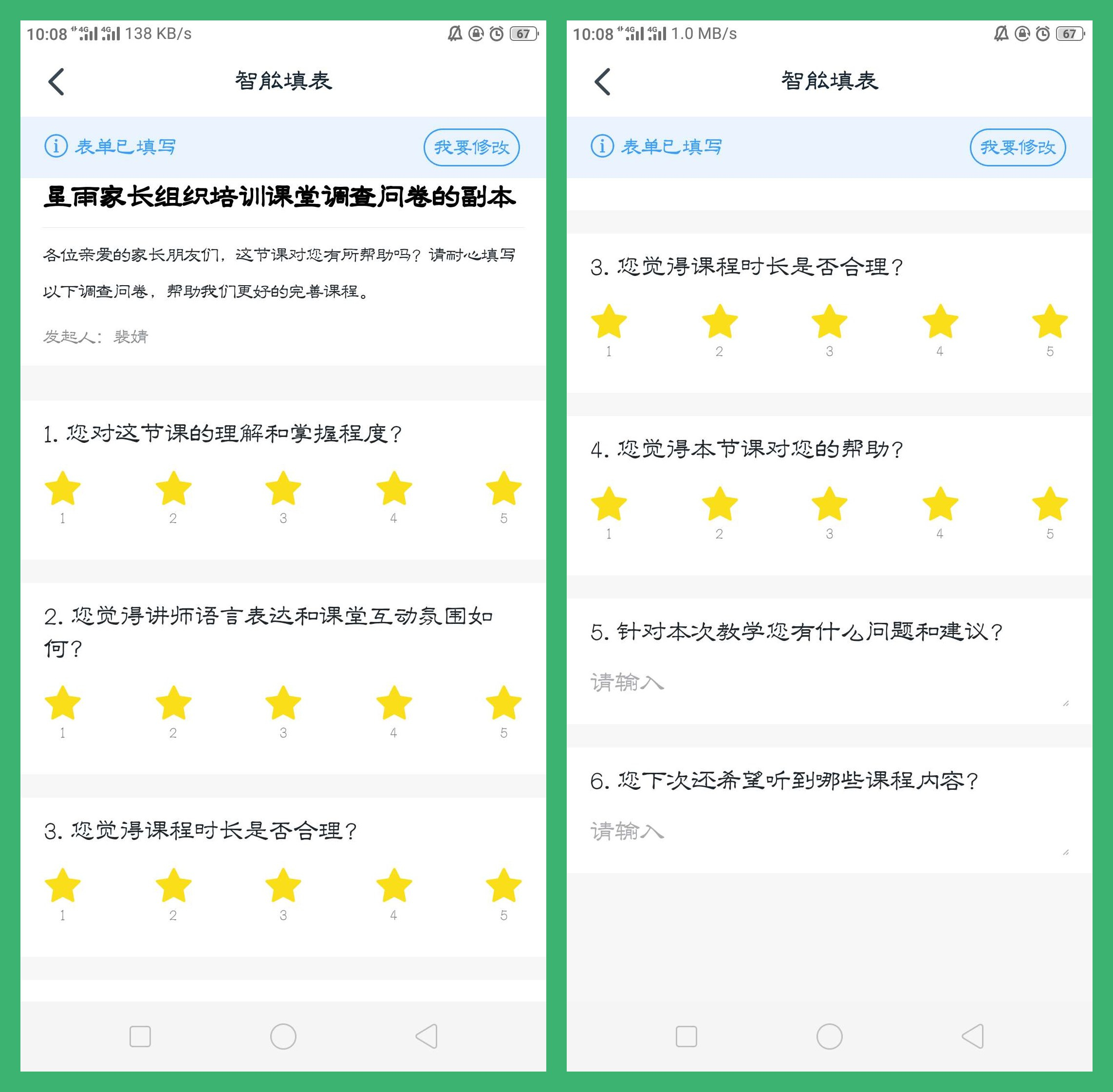 為了更好的了解家長們的需求,調(diào)查問卷必不可少,裴婧老師在直播結(jié)束后將調(diào)查問卷發(fā)至直播群,請家長們填寫。
