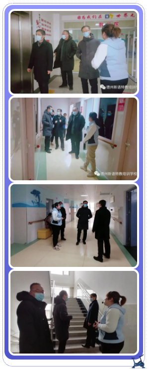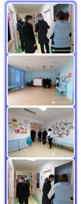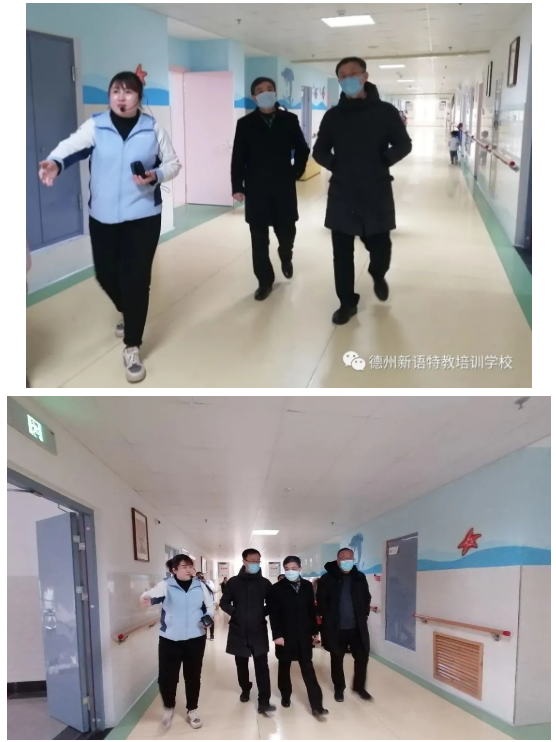 12月29日中午,山東省殘疾人聯(lián)合會康復(fù)部部長沈曉勇在德州市殘疾人聯(lián)合會張令峰副理事長和德州殘疾人康復(fù)活動(dòng)中心張久海主任的陪同下來到德州新語特教培訓(xùn)學(xué)校(康復(fù)中心校區(qū))走訪檢查,校區(qū)負(fù)責(zé)人王藝然、曲風(fēng)英兩位老師全程陪同。