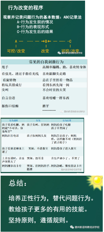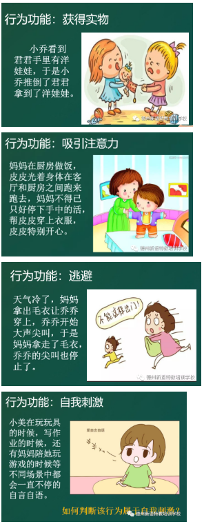 進而講述了問題行為的種類及功能,并通過舉例分析,讓家長了解如何分析問題行為的功能,進而進行行為改變。