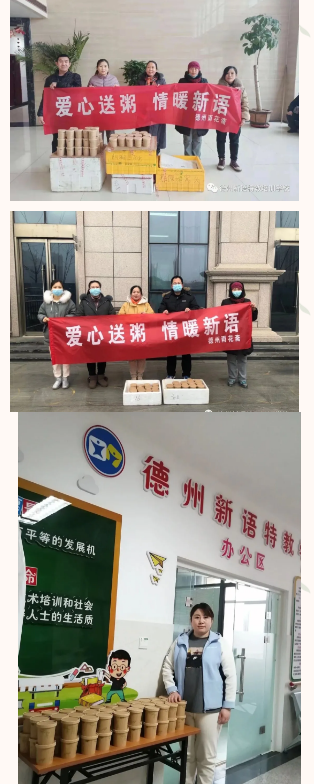 2021年1月20日臘八節(jié),一大早,德州雨花齋志愿者分別走訪了德州新語康復(fù)中心校區(qū)、東海校區(qū)、樺林校區(qū)三個校區(qū),給孩子們送上熱騰騰的臘八粥,祝孩子們節(jié)日快樂,事事“粥”全!