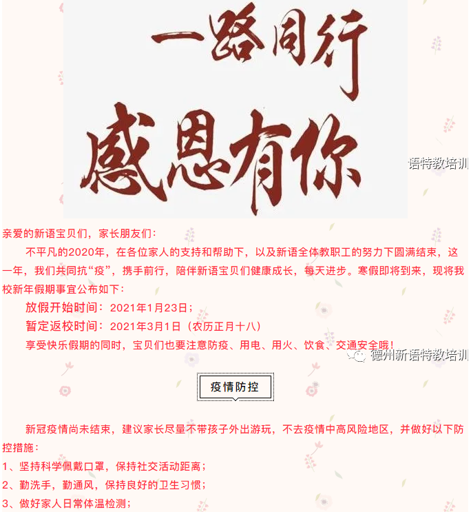【一路同行,感恩有您】2021寒假放假通知