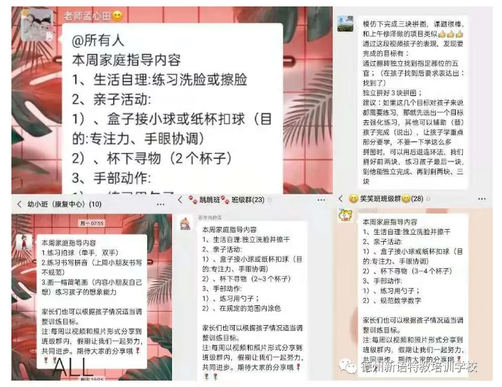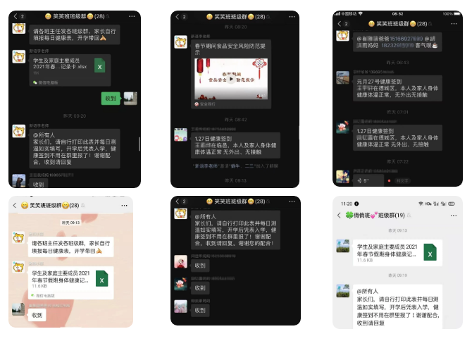 老師們一早在群里發(fā)布班級學習內(nèi)容,督促家長們帶孩子練習。