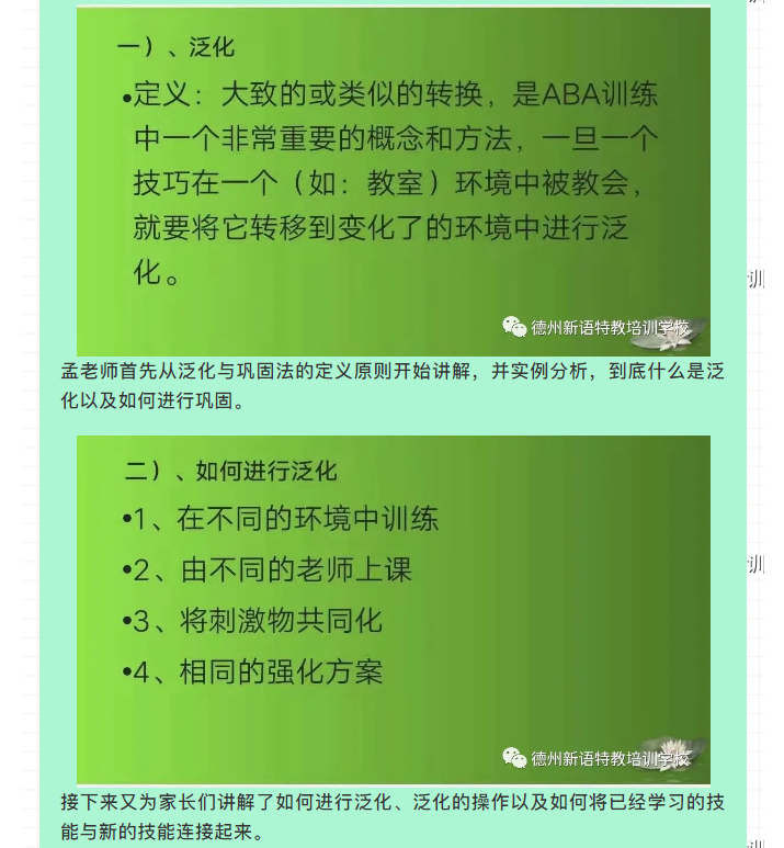 孤獨癥兒童的學習時常會陷在一個非常具體或特定的形式中,難以適應在變化了的環(huán)境中學習,泛化和鞏固是兩種教學方法,他們幫助孩子在變化了的環(huán)境中應用新學到的技能。