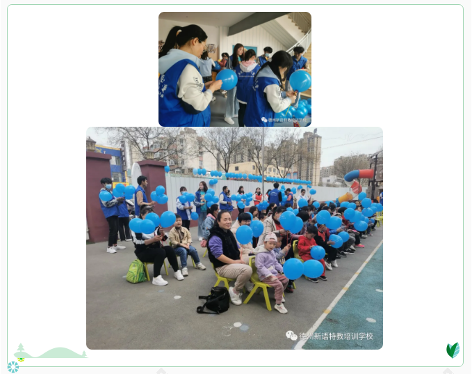 這是一場暖意融融的運(yùn)動會,志愿者和老師們把對星寶們的關(guān)愛化成藍(lán)色行動,提前準(zhǔn)備精心布置會場,把活動現(xiàn)場打造成一片藍(lán)色的海洋。藍(lán)馬甲,藍(lán)氣球,藍(lán)絲帶,藍(lán)色就是我們的主題色!