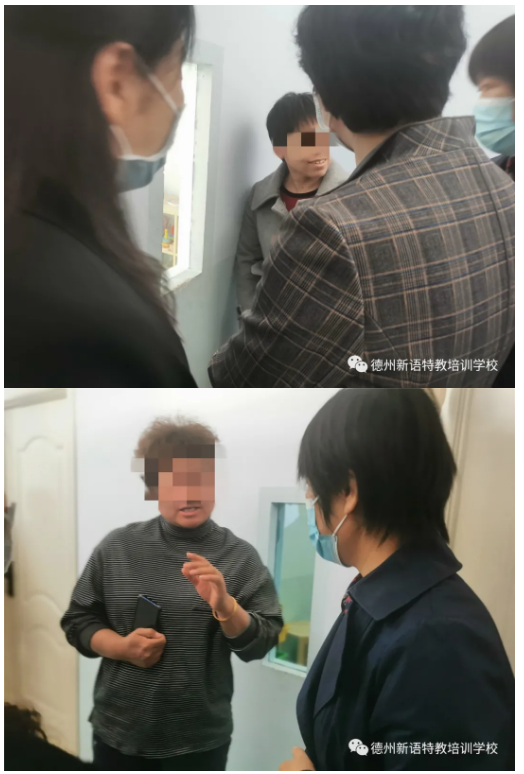劉理和韓理面對(duì)面與家長(zhǎng)溝通孩子們?cè)谛?祻?fù)訓(xùn)練的情況,媽媽們對(duì)新語的康復(fù)訓(xùn)練都給予了肯定!