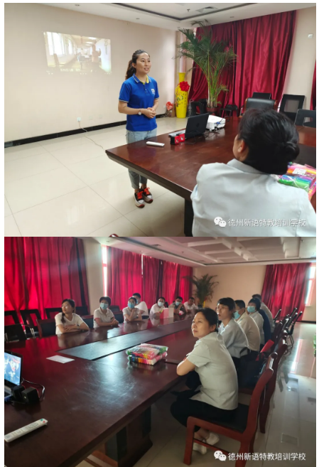 校區(qū)負責人于娟老師為大家介紹學校情況以及心智障礙孩子們的特征,大家一起觀看學校發(fā)展歷程專題片,進一步了解這些來自星星的孩子。