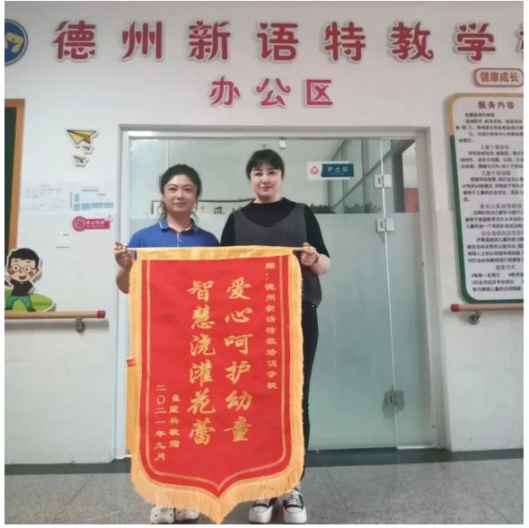 9月19日,中秋節(jié)來臨之際,德州新語的老師們也收到了一份特別的禮物,涵涵(化名)爸爸送來了“愛心呵護(hù)幼苗,智慧澆灌花蕾”的錦旗,表達(dá)自己對學(xué)校和老師的感激之情。