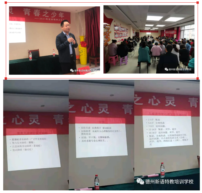 本次講座,我們邀請了德州市第二人民醫(yī)院精神衛(wèi)生中心李秀華主任為大家分享關(guān)于特殊兒童心理健康方面的知識。德州市殘疾人聯(lián)合會李峰副理事長,德州市精神殘疾人及親友協(xié)會主席,德州新語特教培訓(xùn)學(xué)校校長李國俊出席本次講座。