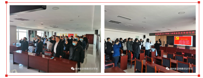 2021年12月30日,德州新語特教培訓(xùn)學(xué)校張靜,孫士偉二位老師參加長河街道2021年第二批預(yù)備黨員宣誓儀式!