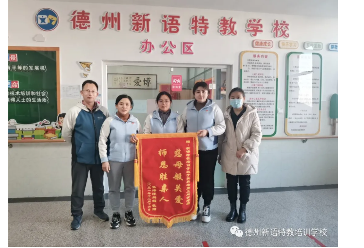 12月20日上午,張海洋媽媽送來“慈母般關(guān)愛、師恩勝親人”的錦旗,表達對新語學(xué)校老師們的感激之情。