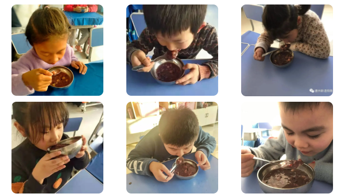 臘八節(jié)當(dāng)然要喝臘八粥啦!老師們將熬制好的臘八粥端到教室里,給孩子們分發(fā)品嘗。