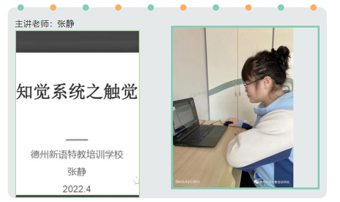 4月23日,德州新語每月一次的家長培訓繼續(xù)線上進行。今天的培訓內(nèi)容是《知覺系統(tǒng)之觸覺》,由學校幼小銜接班班主任張靜老師主講。