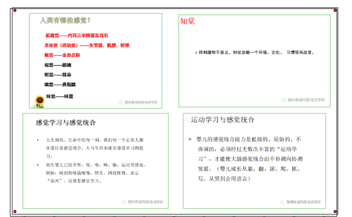 張老師從人類有哪些感覺入手開始講解,引出什么是知覺,以及感覺學習、運動學習與感覺統(tǒng)合的關(guān)系。