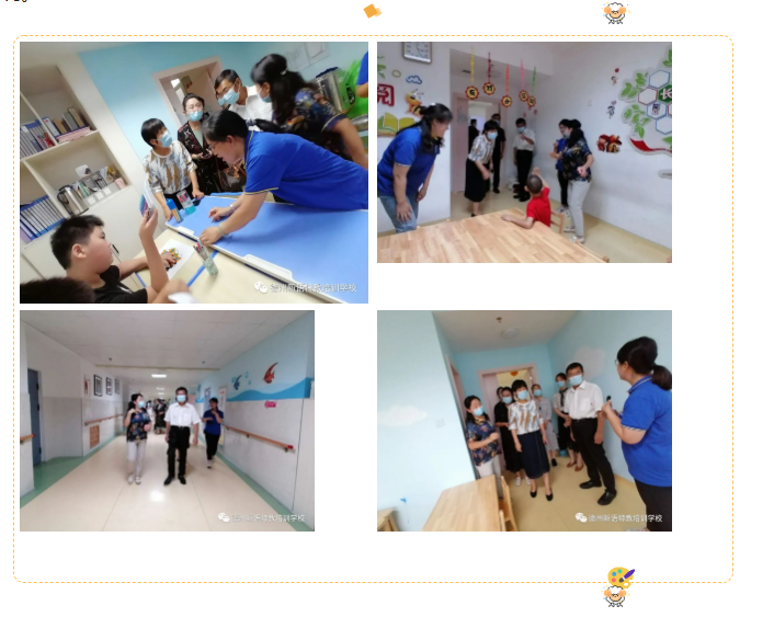 領(lǐng)導(dǎo)們依次走訪了孩子們上課的各個(gè)教室:個(gè)訓(xùn)室、綜合室、感統(tǒng)室、音樂室、多媒體教室、美勞教室及幼小銜接班和培智班,了解孩子們的康復(fù)訓(xùn)練模式。