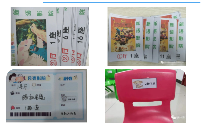 老師們提前準(zhǔn)備了電影票,布置好會場,一切就緒,寶貝們快來吧!